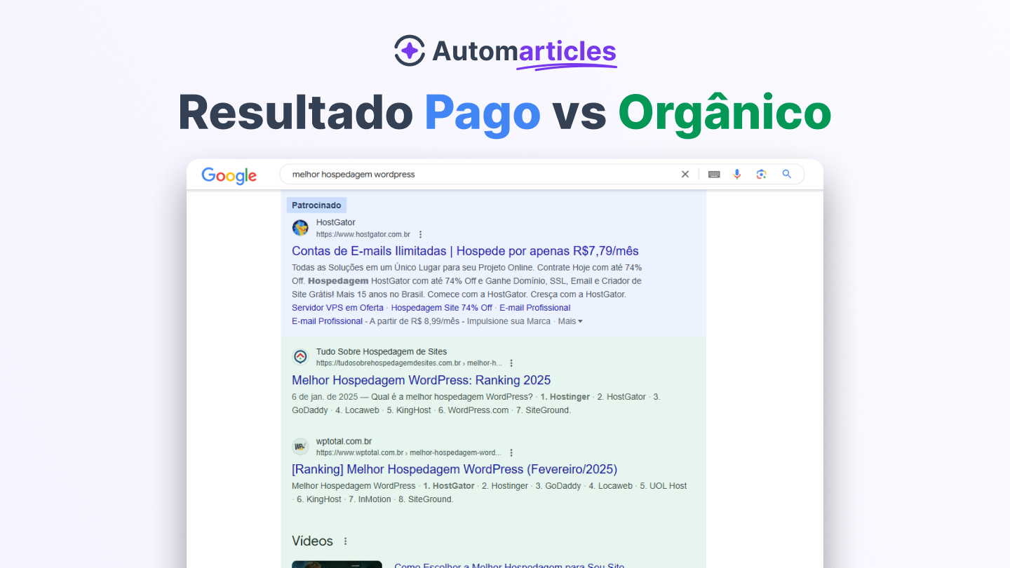 O Google tem vários tipos de resultados na sua página de busca: links, lugares em um mapa, produtos, vídeos, etc. Mas a principal diferenciação entre eles é: aquela marca pagou para estar ali… ou o Google considerou que ela era uma referência no tema buscado, e que valia a pena mostrá-la para o usuário?