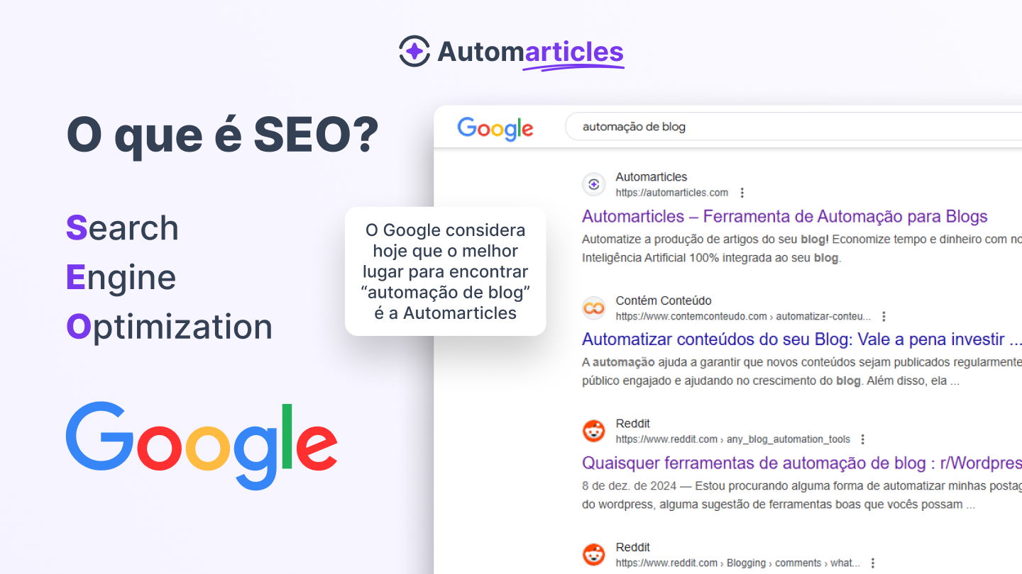 SEO é a ciência de otimizar o seu site e o seu conteúdo para ficarem bem posicionados no Google